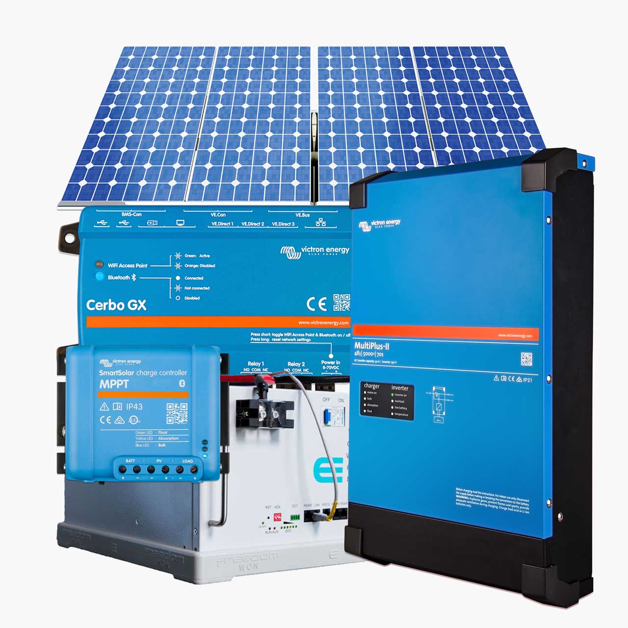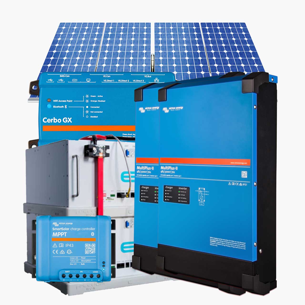 Home backup power kits with Victron inverters, LiFePO₄ batteries, and GX monitoring. Modular, scalable, and upgradeable to solar